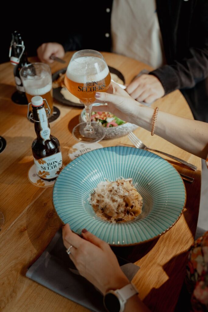 Côté cave, le visiteur pourra découvrir toutes les bières de la Brasserie Caulier – gammes PAIX DIEU, BON-SECOURS, STUUT – ainsi que des exclusivités, toutes travaillées en accords avec les plats par le sommelier Bastien Barbaix. Ce dernier proposera également une jolie carte des vins.