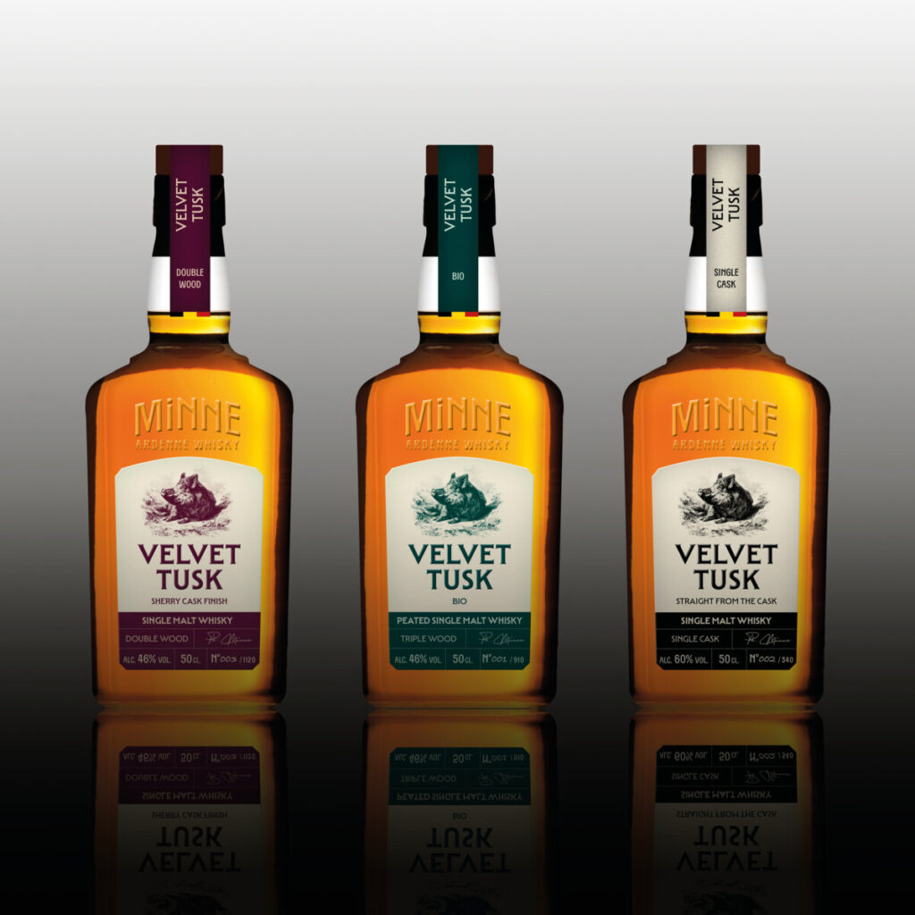 La gamme Velvet Tusk – Ardenne Whisky comprendra trois variétés dès le lancement, chacune révélant une facette singulière du vieillissement en fût. La Brasserie Minne, reconnue pour son expertise en bières barriquées, poursuit ainsi son exploration du bois comme vecteur de goût et d’émotion. La mémoire du bois, l’origine diversifiée des barriques et la précision des brassins sont au cœur de cette nouvelle aventure.